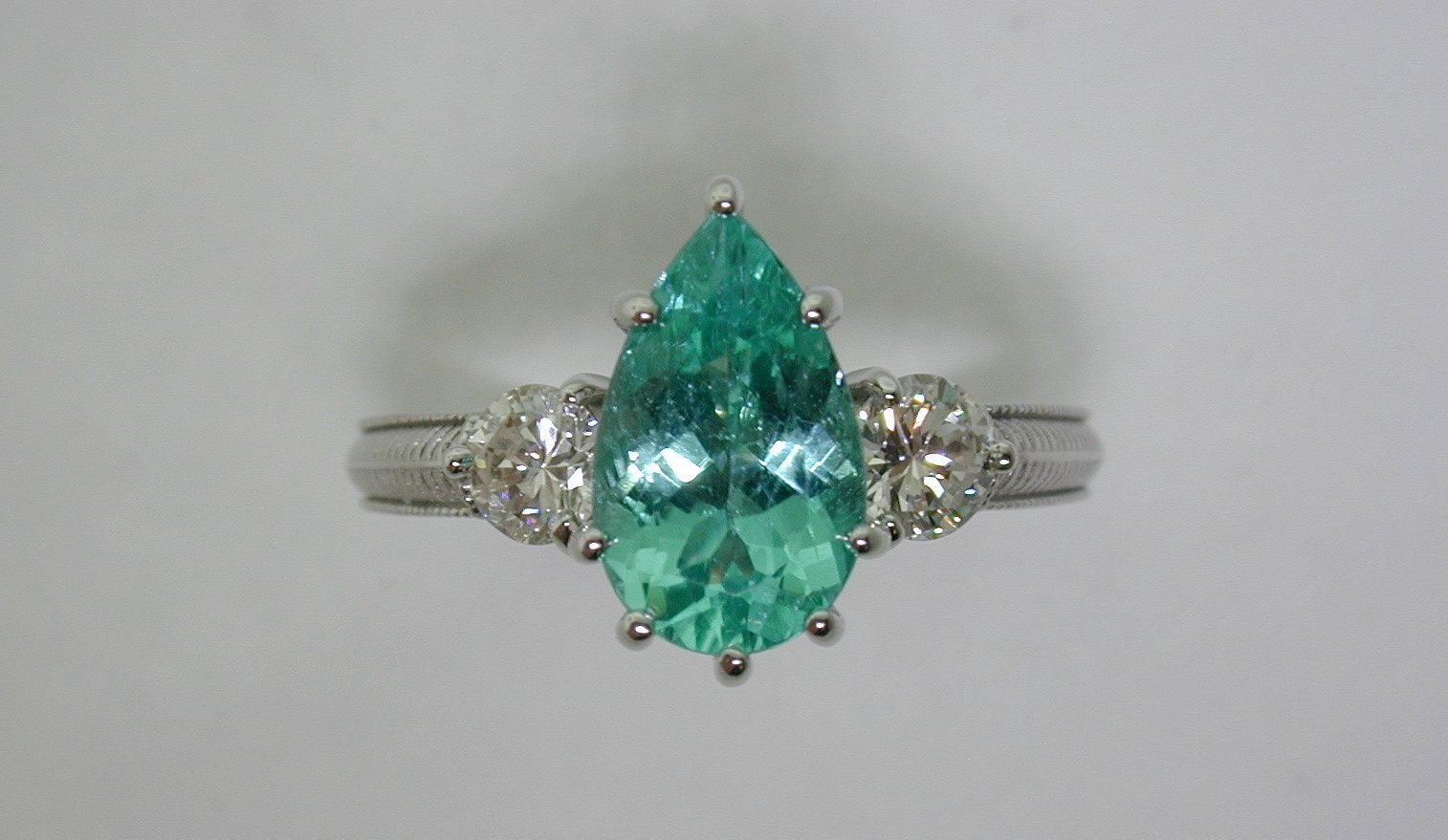 Paraíba tourmaline is easily recognizable because of its brightly saturated blue/green hues. Although it was first discovered in Brazil, it has also been found in Mozambique and Nigeria in larger sizes. The gemstone is rare and pricey, because of how difficult it is to excavate. They are found in pencil-thin veins deep below the Earth’s surface in very small sizes.