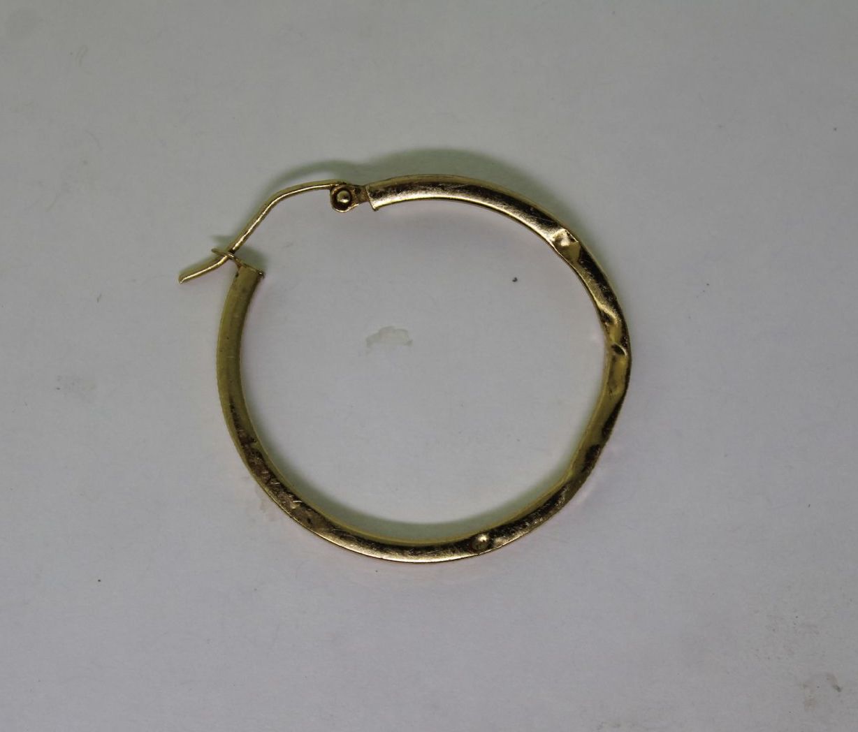 Hollow versus solid items: large chain links and hoop earrings are often hollow so the weight doesn’t drag on the earlobe or neck. While this makes sense for some hoop earrings, the metal for quality jewelry should be at least a heavier gauge to prevent easy denting. Once again, manufacturers will try to save gold to keep the cost down, but at the cost to the consumer with denting. See figure #5